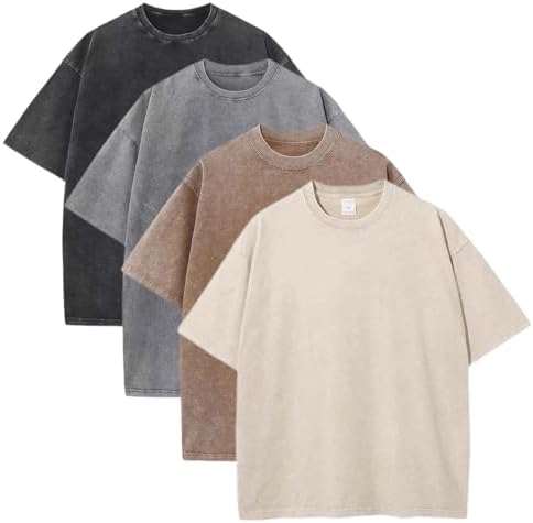Sponsored Ad - 4 Pack Men's Summer Oversized T-Shirts Unisex Vintage Baggy Heavy Cotton Tee Short Sleeve Loose Solid Casual Tops