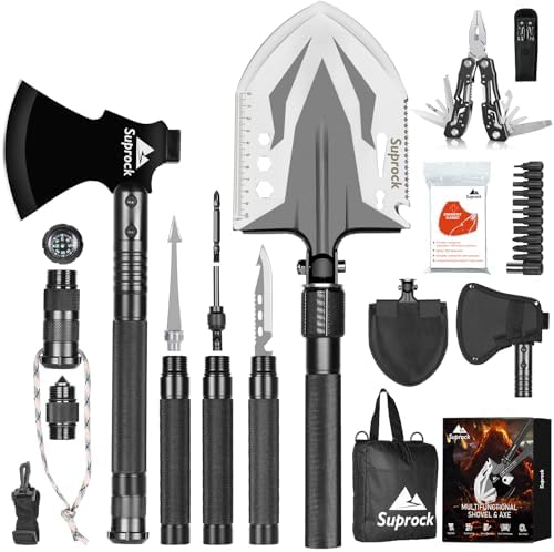 Survival Shovel High Carbon Steel Tactical Shovel Axe Folding Entrenching Tool Camping Hiking Shovel Carrying Pouch Car Emergency Survival Gear