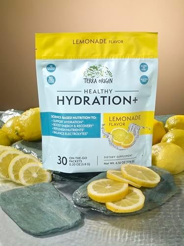 Sponsored Ad - TERRA ORIGIN Healthy Hydration+ Electrolyte Powder Packets | Sugar Free, Gluten Free Drink Mix | Lemonade | 30 Servings (1-Pack)