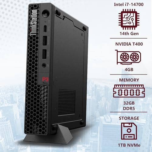 Lenovo ThinkStation P3 Tiny Workstation Intel i7-14700, 32GB DDR5, 1TB NVMe, T400 4GB Discrete Graphics, WiFi 6E + BT, RJ-45, 3X miniDP, DP Port, HDMI (5 Monitor Max), Win 11 Pro, 3 Yr Wty