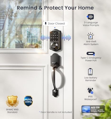Sponsored Ad - VE017G Wi-Fi Keyless Entry Door Lock with Fingerprint, App Remote Control, Smart Locks for Front Door, Electronic Keypad Deadbolt, Auto Locking, Waterproof, Easy to Install, Matte Black