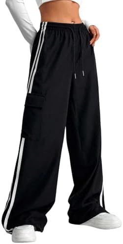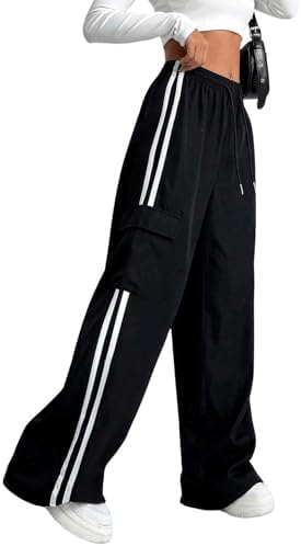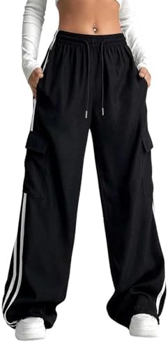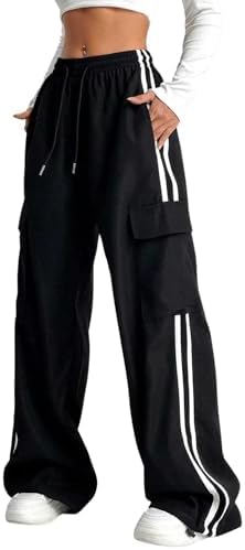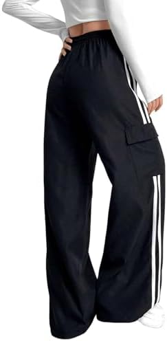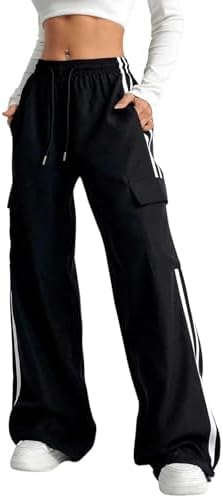Sponsored Ad - Women's Cargo Pants Baggy Straight Wide Leg Track Pants Striped Joggers with Pockets Athletic Streetwear