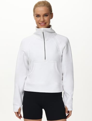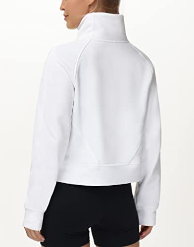 Sponsored Ad - THE GYM PEOPLE Womens' Half Zip Pullover Fleece Stand Collar Crop Sweatshirt with Pockets Thumb Hole