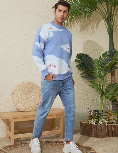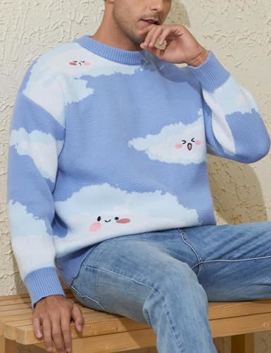 Sponsored Ad - Men Oversized Sweater Graphic Cable Knit Jumper Cute Unisex Crewneck Pullover
