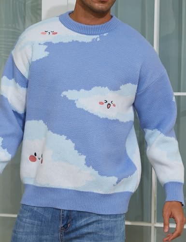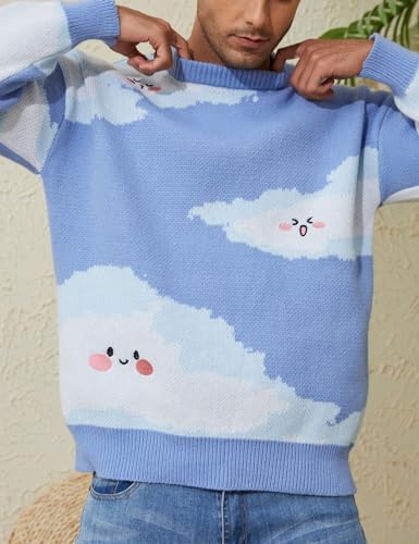 Sponsored Ad - Men Oversized Sweater Graphic Cable Knit Jumper Cute Unisex Crewneck Pullover