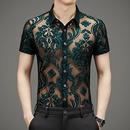Men Women See Through Shirts Sexy Short Sleeve Night Club Fishnet Lace Shirt