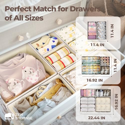 Sponsored Ad - ZenStorage Cotton Linen Drawer Organizer for Baby Clothes, 12Pack Foldable Nursery Dresser Divider, Multi-Size Set Dresser Drawer Organizer for Nursery, Bedroom and Closet, Beige